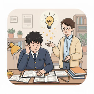 そんなとき、私は解き方や答えをただ教えるのではなく、できる限りヒントを出して、生徒に自分で考えて解いてもらうことを大切にしています。
